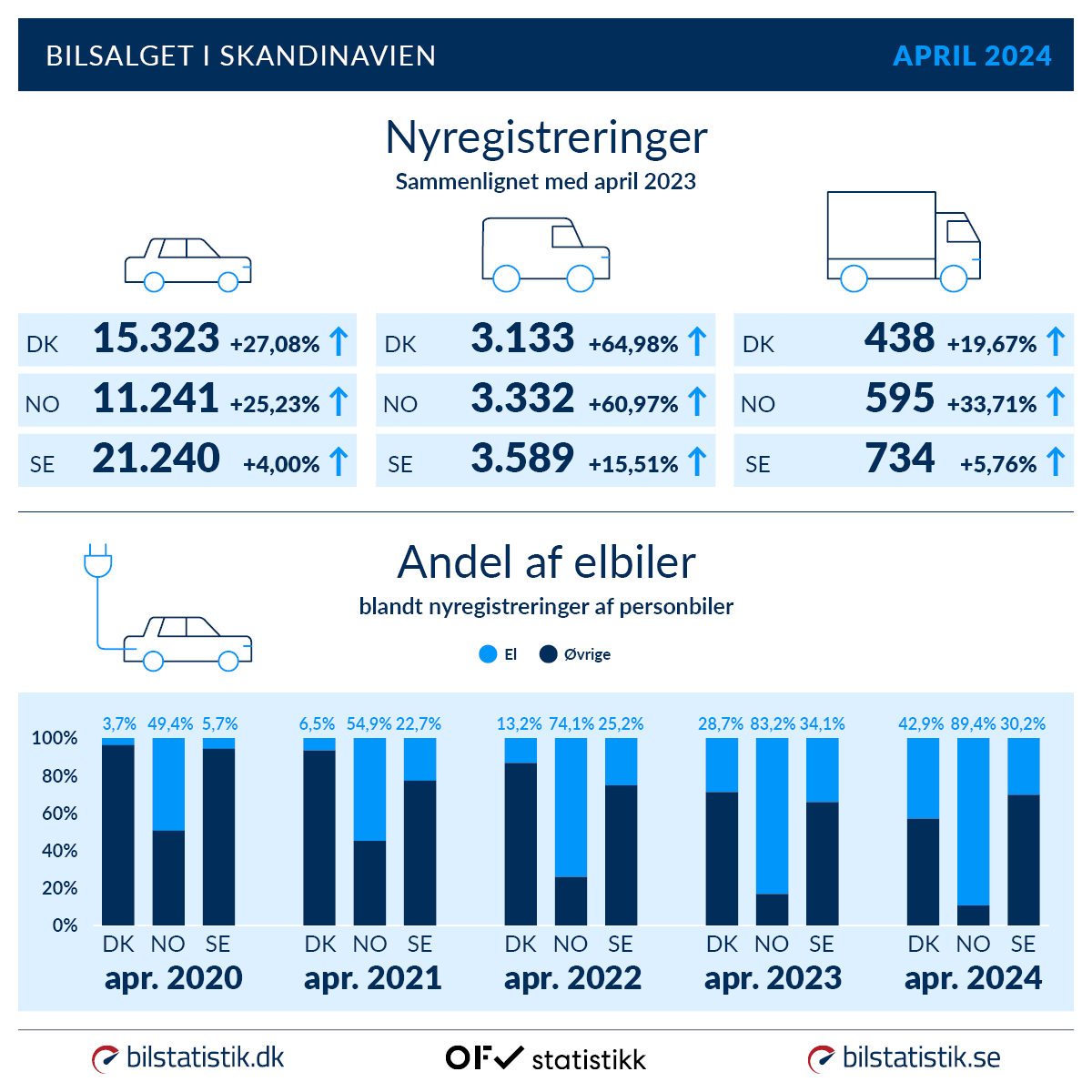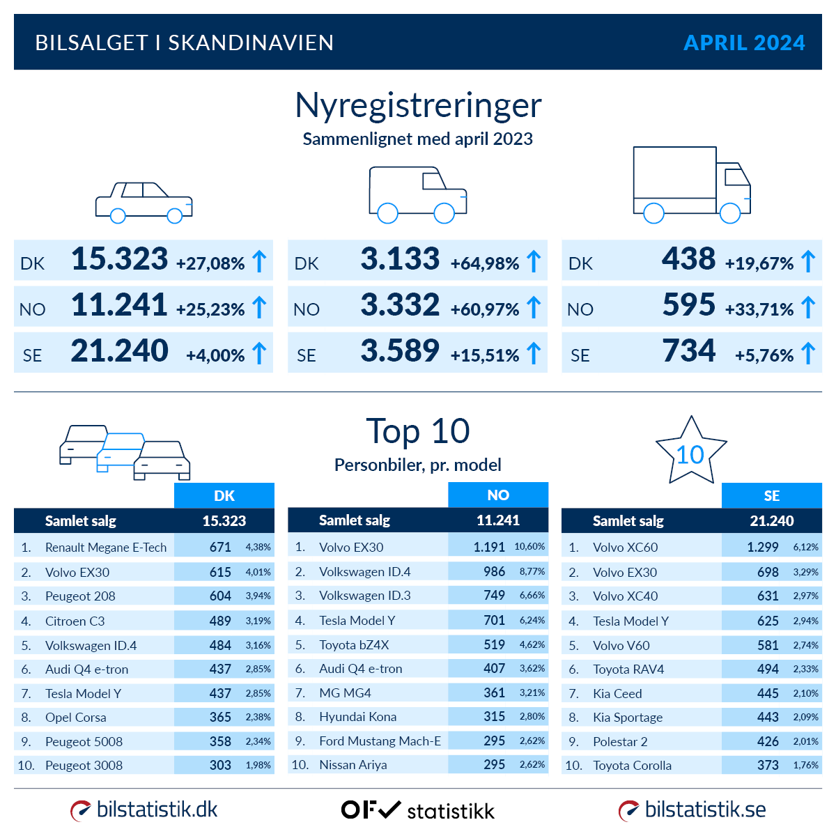 Bilsalget i Skandinavien – april 2024